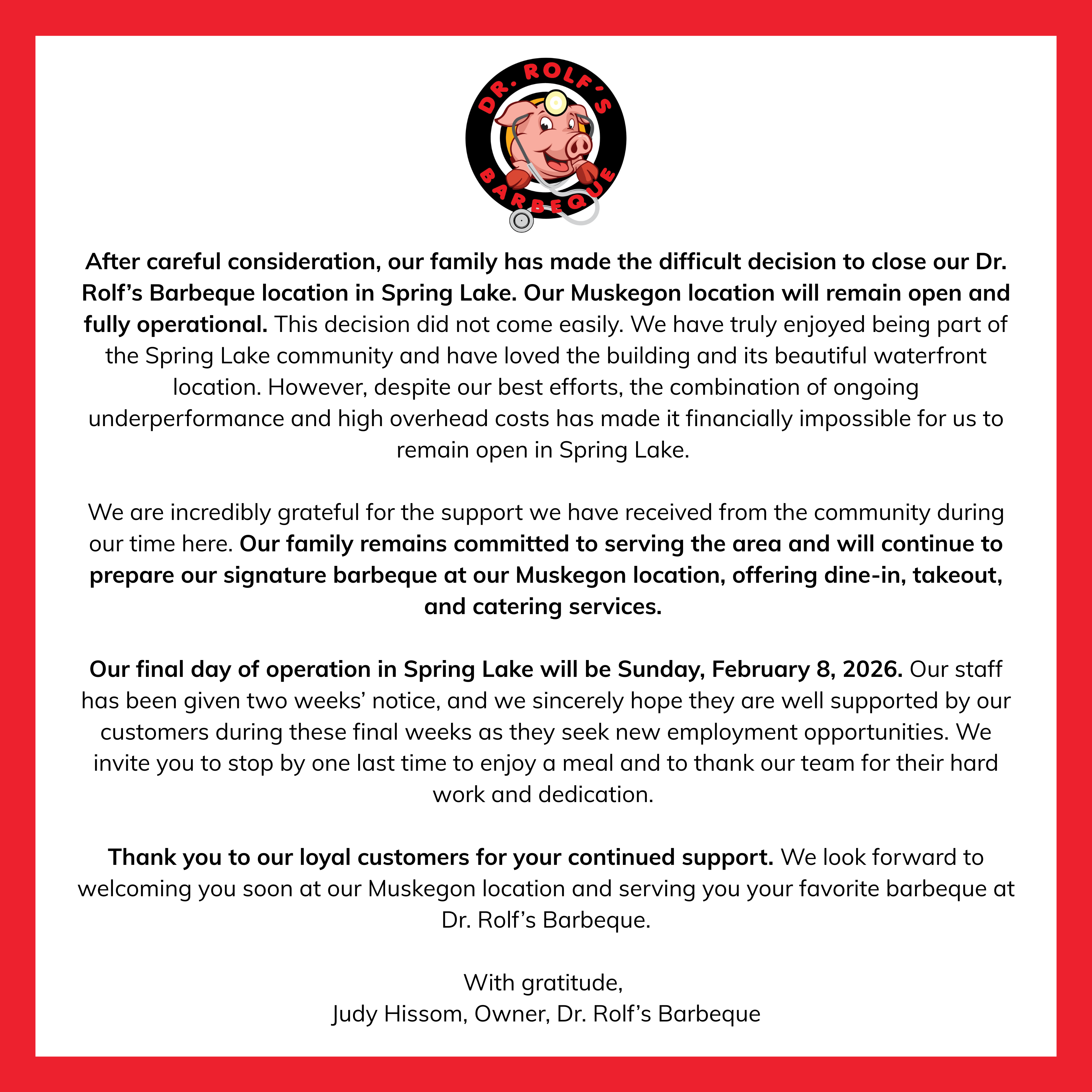 Experience craft barbeque at its finest at our family-friendly restaurant, nestled in the historic and picturesque Village of Spring Lake. With a beautiful deck overlooking Spring Lake and the Grand River, our restaurant offers not just delicious food but also stunning views. We pride ourselves on providing a warm welcome, attentive service, and genuine hospitality that will make you feel like part of our family. If you prefer to dine at home, explore our menu featuring starters, soups & salads, sandwiches, and meats.